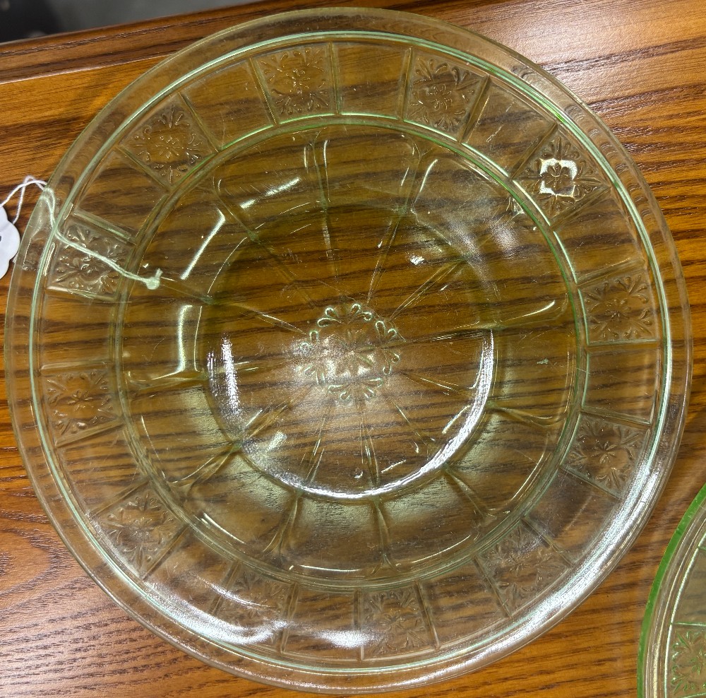 Jeanette Doric uranium green Depression Glass 6" platesSet of 31930's