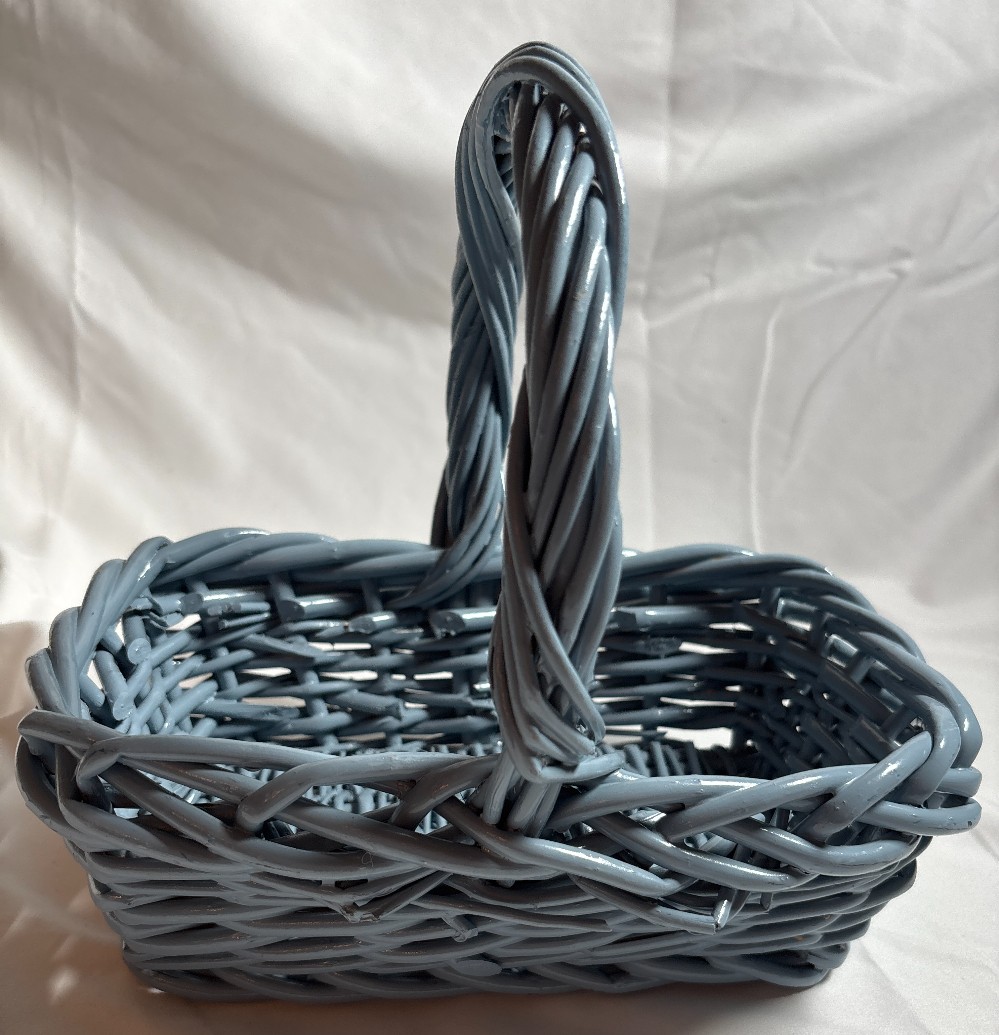 Blue rectangular Easter basket with handle.10"T x 11"L x 8"W